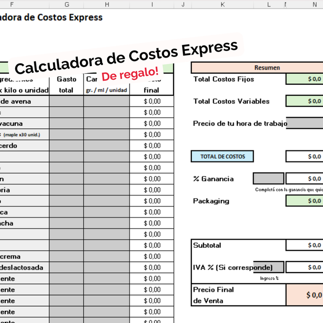 Valorizá tu tiempo: Cargás el precio de tu hora de laburo y el tiempo que te llevó cocinar, y la planilla te tira el Precio de Venta Sugerido. ¡Si no cobrás por tu tiempo, no tenés un negocio, tenés un hobby caro!